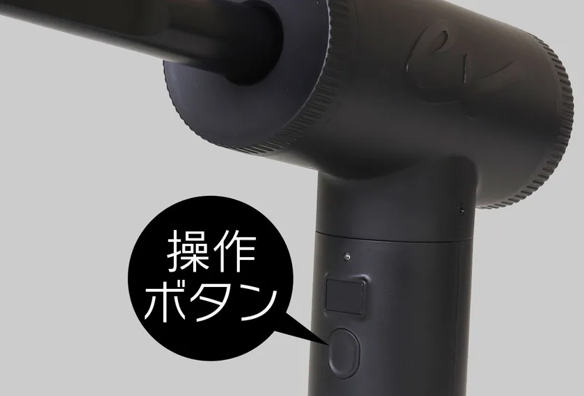 ボタン1つで電源ON/OFF。噴射&吸引は3段階まで操作することができます。噴射・吸引のどちらを使用する場合でもご使用方法は同じです。