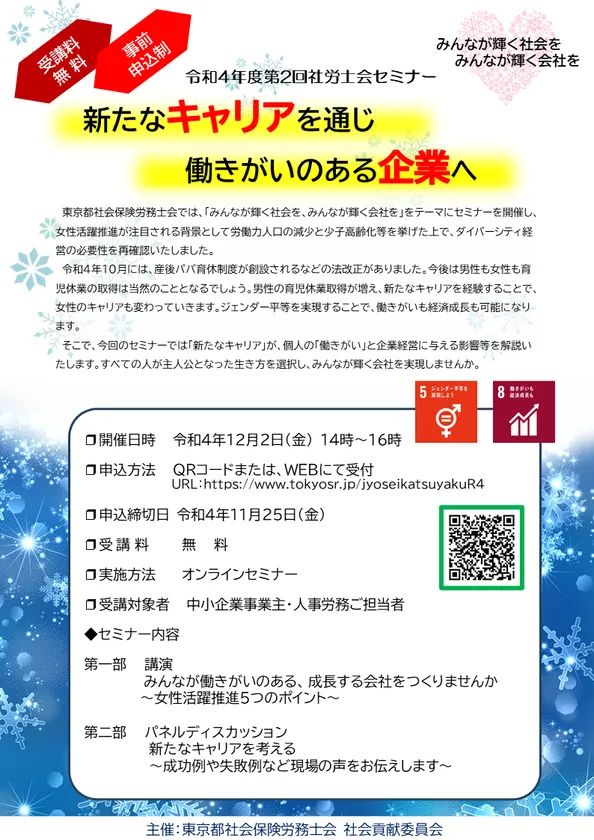令和4年度第2回オンライン社労士会セミナー 「新たなキャリアを通じ 働きがいのある企業へ」 12月2日(金)に開催