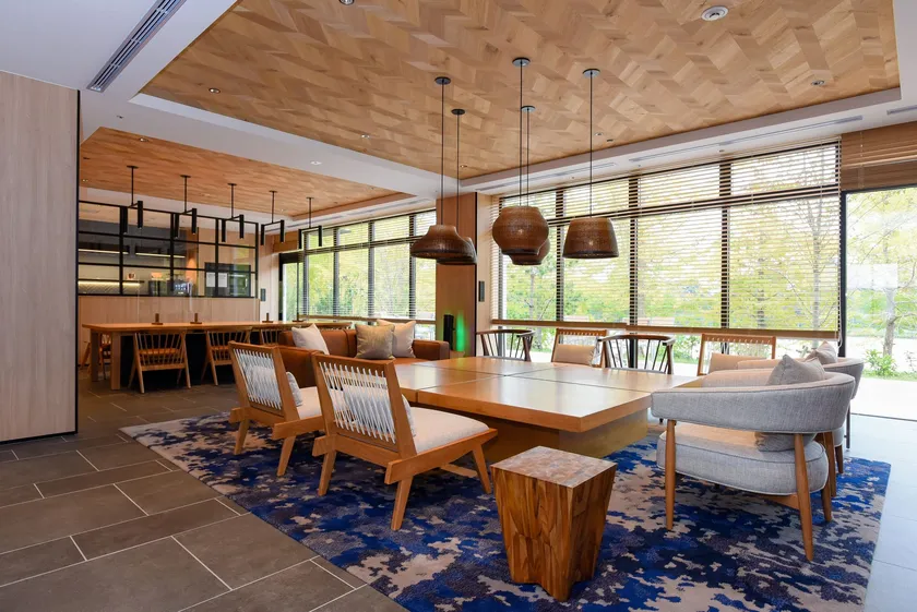 ・「フェアフィールド・バイ・マリオット」は、シンプルにゆったりとくつろぐことのできる宿泊特化型のホテルです。食事やお土産などは道の駅をはじめ地域のお店を利用していただくことで、地域の人々との交流や道の駅との往来を促す設計となっています。
