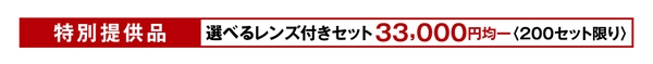 特別提供品の選べるレンズ付きセットは、200セット限定!(※レンズは遠近、中近、近々、単焦点からお選びいただけます。)