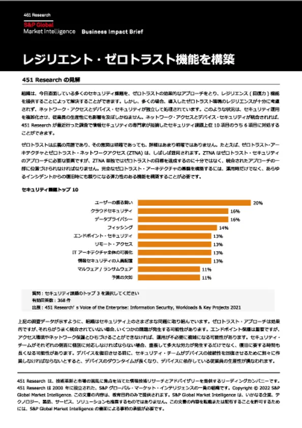 [1]「レジリエント・ゼロトラスト機能の構築」451 Research(S&P Global Market Intelligence傘下)が発行する委託レポート 2022年9月