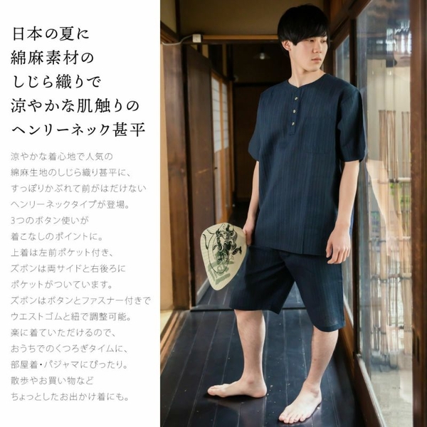 3.洋服感覚で気軽に着られるヘンリーネック甚平