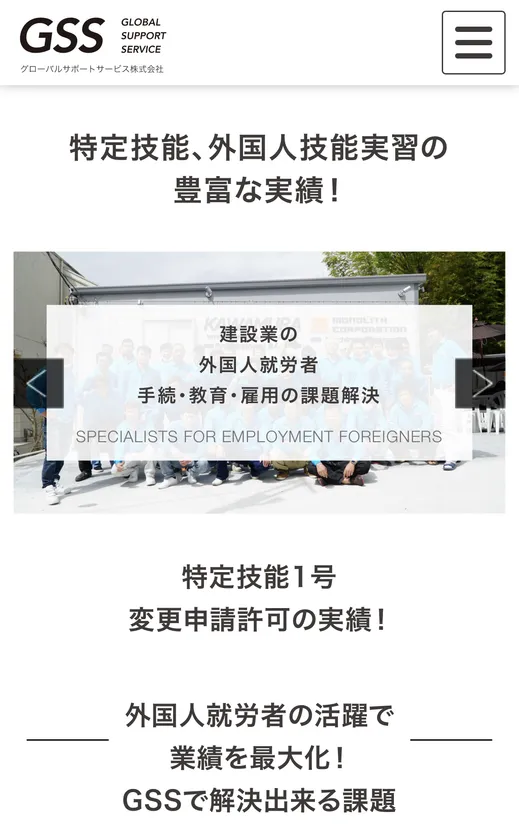 「グローバルサポートサービス株式会社(略称:GSS)」は、行政書士の橋本を中心に登録支援機関として、特定技能1号受入れに特化したサービスを提供し、熟練の行政書士が法務面で企業の皆さまを支えます。