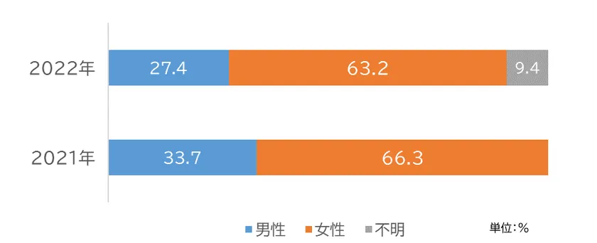 男女別相談者の割合(単位:%)