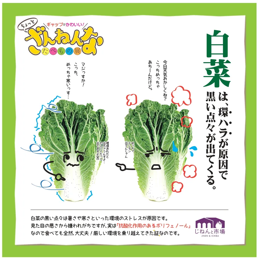 (1) 白菜は、環ハラが原因で黒い点々が出てくる。