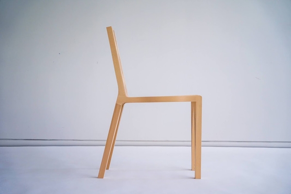 一般的な建築資材である合板を曲げ加工して作り上げた、やわらかい椅子