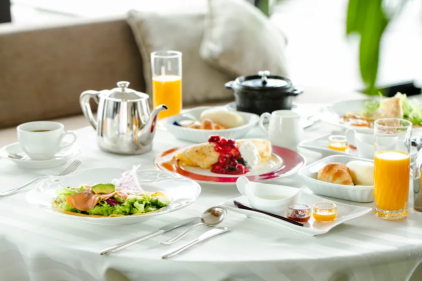 佐賀の銘酒で愉しんだ翌日の朝食では佐賀のこだわり食材で作る「SAGAガレット」など、佐賀をゆっくりと感じて頂く至福の時間を、こだわりの空間でお過ごしください。