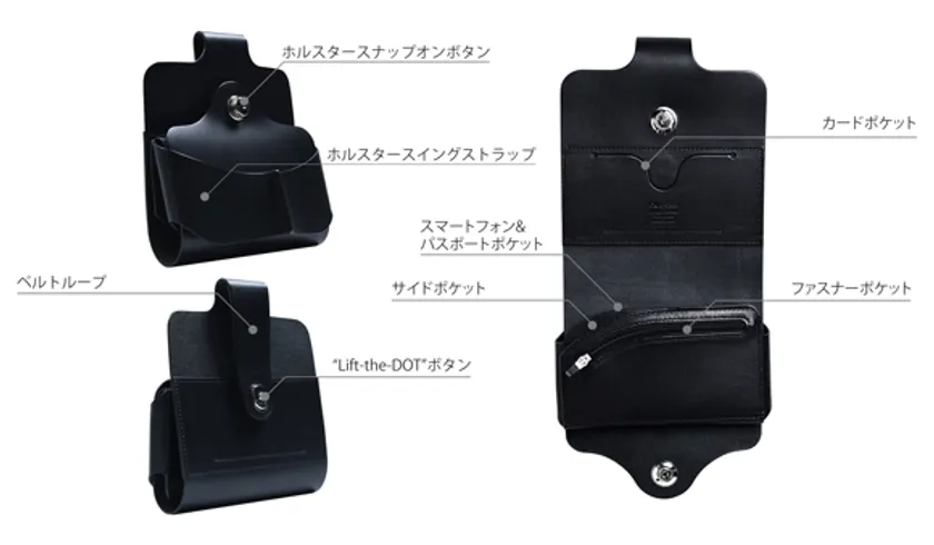 スマートフォンのディスプレイが大型化する時代の中で、それらをポケットやカバンに収納することは実用性を損なうことがあります。それを解決すべく生まれたこの製品は、仕事やプライベート、様々な生活スタイルの中で多様に対応でき、且つスタイリッシュでコンパクトにお使いいただける製品です。お札、小銭、カード(3枚まで)やパスポート、スマートフォン等をまとめて収納でき、片手で簡単に出し入れが可能。カジュアルシーンからビジネスユースまで幅広くお使いいただけます。