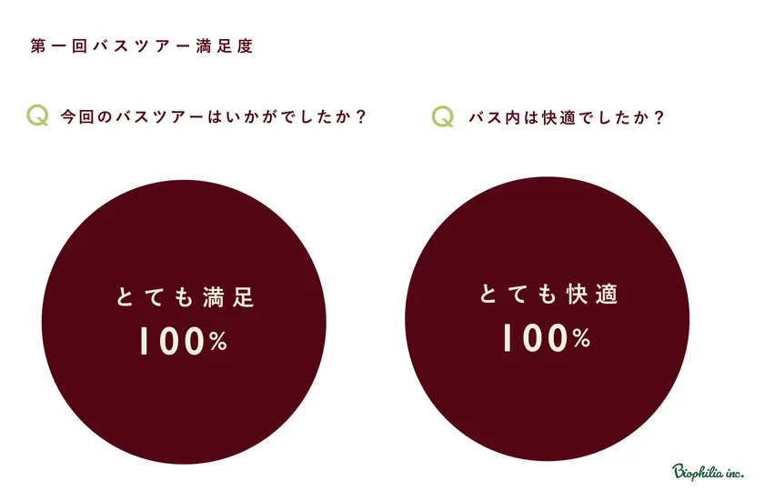 前回のバスツアーでも、ワンちゃん専用バスに関して参加者様より満足度最高評価100%をいただいております。