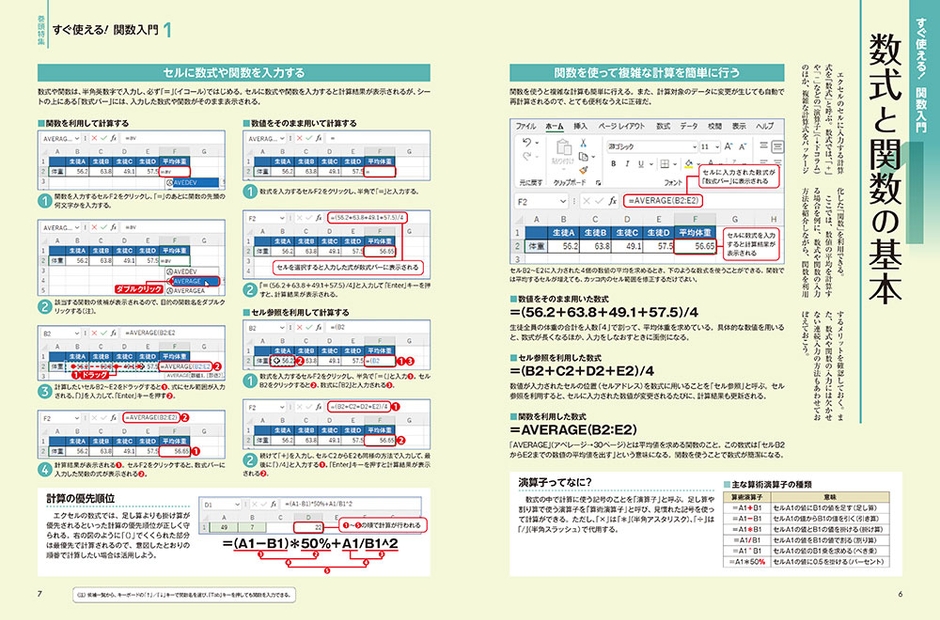 「SUM」や「IF」、「VLOOKUP」など、エクセル関数の基本からすぐに役立つ便利な関数まで実例を用いて丁寧に解説。最新のエクセル2021にも対応。