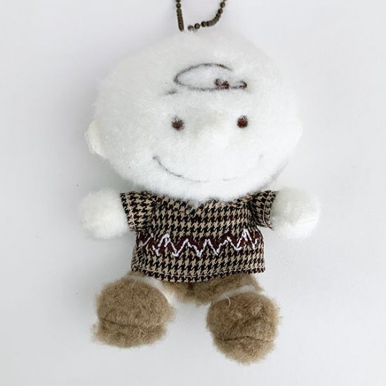 お次は、チョコチェックシリーズのチャーリー・ブラウンをご紹介。ボディはふんわりクリーム、靴はミルクチョコみたいなチョコチェックシリーズです。チェックのお洋服が可愛いけど大人っぽくて、大人も使いやすいマスコット♪