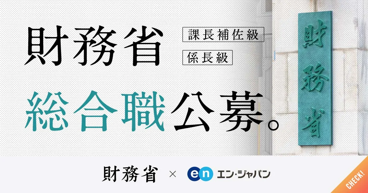 財務省、エン・ジャパンで 総合職(課長補佐級・係長級)を公募開始!