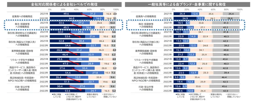 「株主・投資家」への発信のスコアは2021年に続き、ほかの対象よりも低め。
