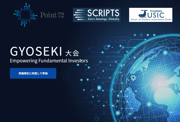 本大会は、本日公開したGyosekiシステムを活用し、対象3銘柄の業績予想をして頂き、予想値の精度および予想の手法を競い合うことで、ファンダメンタル・アナリストの実務を体験することができます。習得したスキルと経験は、資産運用、金融アドバイザー、そして企業戦略など幅広い業界で応用できます。