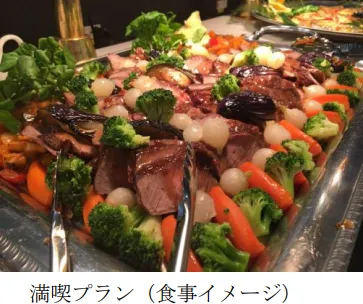 ※食事は、食べ放題ではありません。ビュッフェ形式で、申込みの人数に応じて提供します。