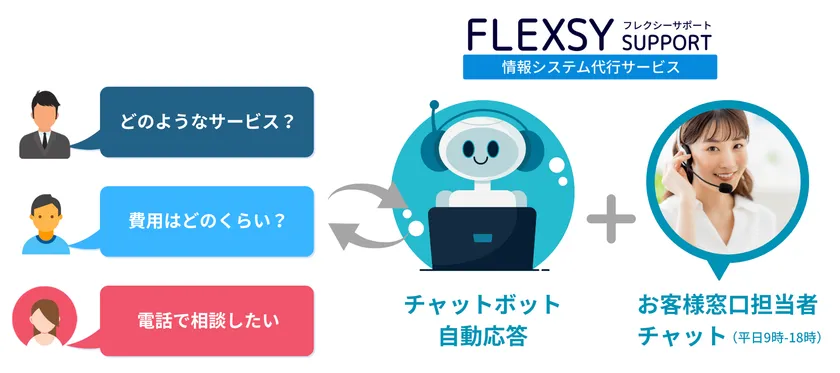 フレックシステムズ株式会社(本社:東京都港区新橋、代表取締役:笹川 廣太郎)は、中小企業向けに情報システムアウトソーシングサービス・社内ITサポートサービスを提供する「FLEXSY SUPPORT フレクシーサポート<情報システム代行サービス>」チャットボットによるお問い合わせ対応を2022年11月1日より開始し、情シスや社内ITに役立つ記事を発信するブログサイトとともにオープンしました。