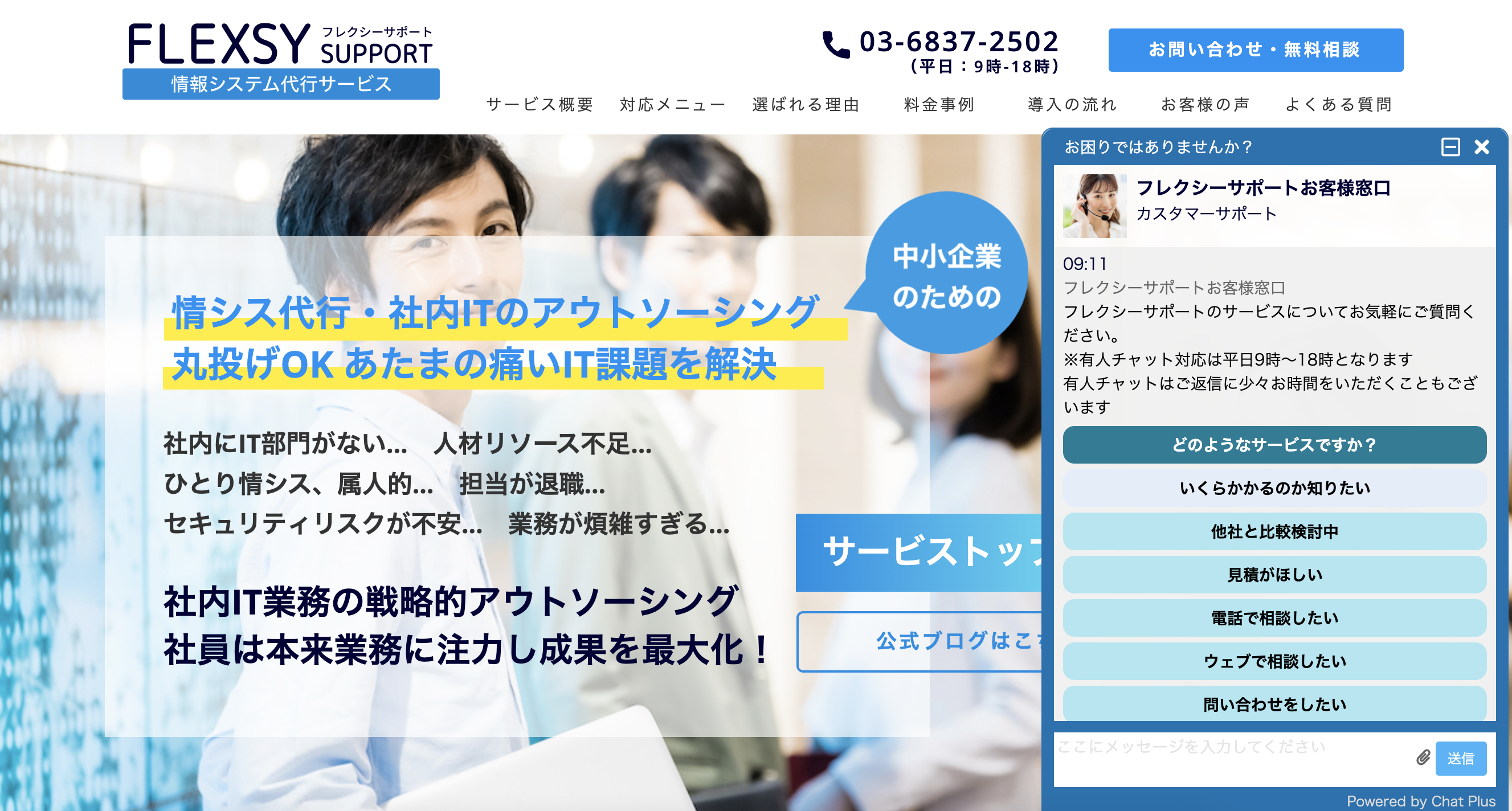 中小企業向け情シスアウトソーシング・ITサポート IT人材不足解決する 「フレクシーサポート<情報システム代行サービス>」 サービスサイトにてチャットボット導入と 社内ITに役立つブログサイトをオープン