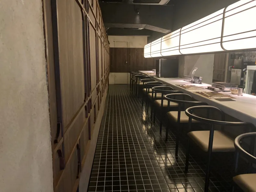 地下鉄日本橋駅より徒歩2分の場所にある当店。シンプルな外観とどこか懐かしい雰囲気の引き戸が目印です。隠れ家的な雰囲気で穏やかな灯りが照らす、カウンターのみの落ち着いた空間で料理をお楽しみいただけます。