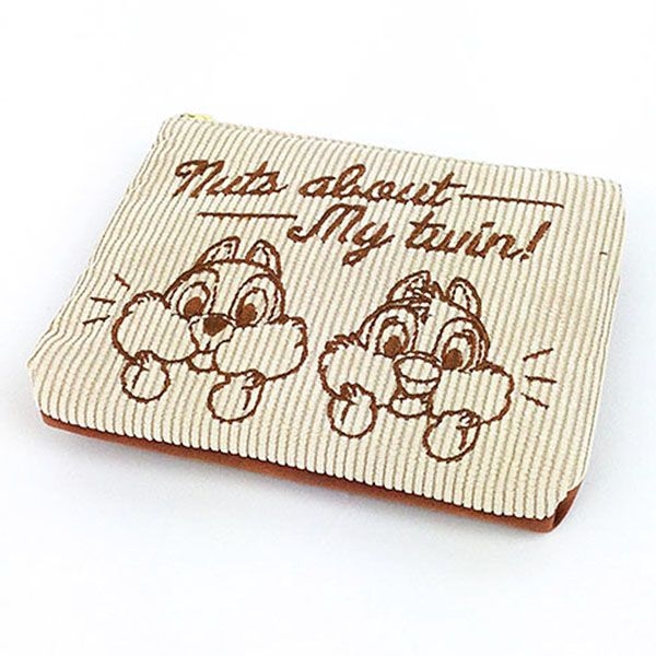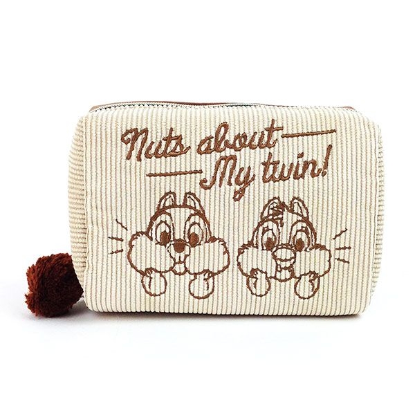 仲良く並んだチップとデールがかわいいですよね。アイボリーカラーのコーデュロイが秋冬にピッタリです。サオズは100×140×80㎜で、マチがたっぷりの便利サイズです。刺繍されたチップ&デールの表情がキュート♡