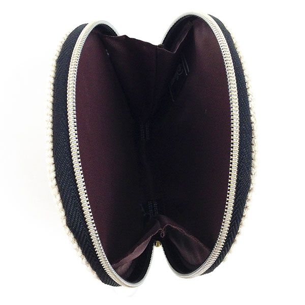 裏側は無地のブラウンで、シックな仕上がりになっています。ファスナーについた飾りもアクセントに♪