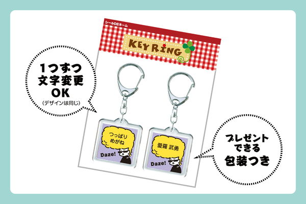 昭和レトロのヤンキーが「キーホルダー」に!名前や好きな文字が入れられるオーダーメイドタイプ。1つずつ文字変更できるので、ペアギフトやぷちギフトにもおすすめ。