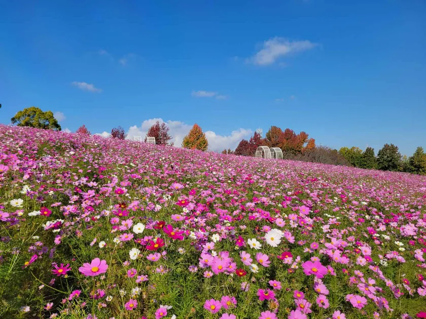「堺・緑のミュージアム ハーベストの丘」で “50万本のコスモス”が見ごろに!開花予定は11月中旬頃まで ~秋空の下、風に揺らぐコスモス~