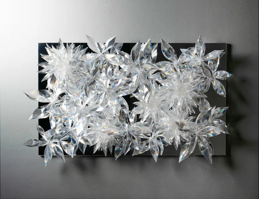 インスタレーションやプリズムアート、ガラスによるオブジェの新作を発表いたします。会場の中心は、近年の代表作の一つである水と光のインスタレーション《SPECTRA》を展示。また、独自に扱う素材“プリズム光学樹脂”による《Prism Flower Wall》や、水のように極めて透明な質感の“クオーツガラス”による希少なオブジェを、本展のための新作として公開いたします。いずれも来場者がアートを身近に感じられるようなスタイルで、都市や建築、インテリア、パブリックスペースと融合する光のアートを提案いたします。