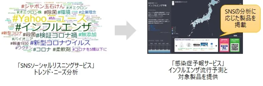 「SNSソーシャルリスニングサービス」と「感染症予報サービス」の連携イメージ