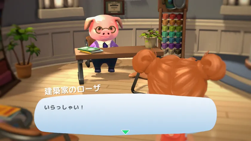 有名な不動産会社を経営するブタで、町の将来の建物を建てるために、信頼できる人脈を持っている。彼女の店では色々な種類の家を買うことができ、材料とお金を用意すれば、建築許可を申請してくれる。家の外観に不満がある場合は、屋根や壁の改造を手配することも可能。