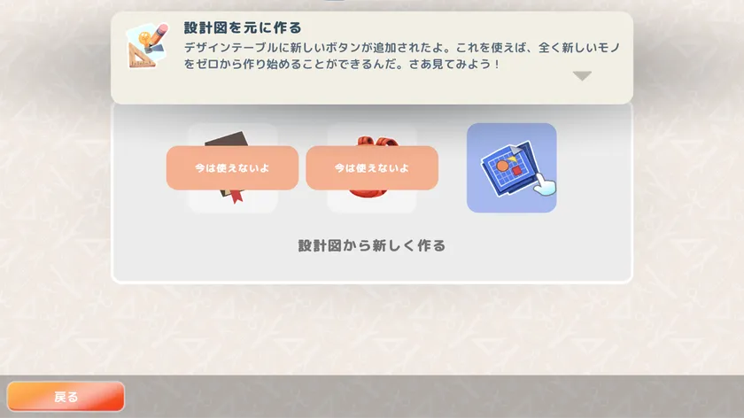 クラフトレシピは、大工のサリーから購入したり、隣人を助けてランダムに入手したりすることができます。橋、ランプ、椅子、ベッドなど、さまざまな特定のアイテムや建物に加えて、大きいサイズなオブジェのレシピもあって、創造性を発揮することができます。クラフトレシピには、デザインの最大サイズと最小サイズが記載されているので、サイズの範囲内であれば、ユニークなアイテムを作ることも可能です。以前のデザインを改良する場合は、直接レシピにアクセスして変更します。