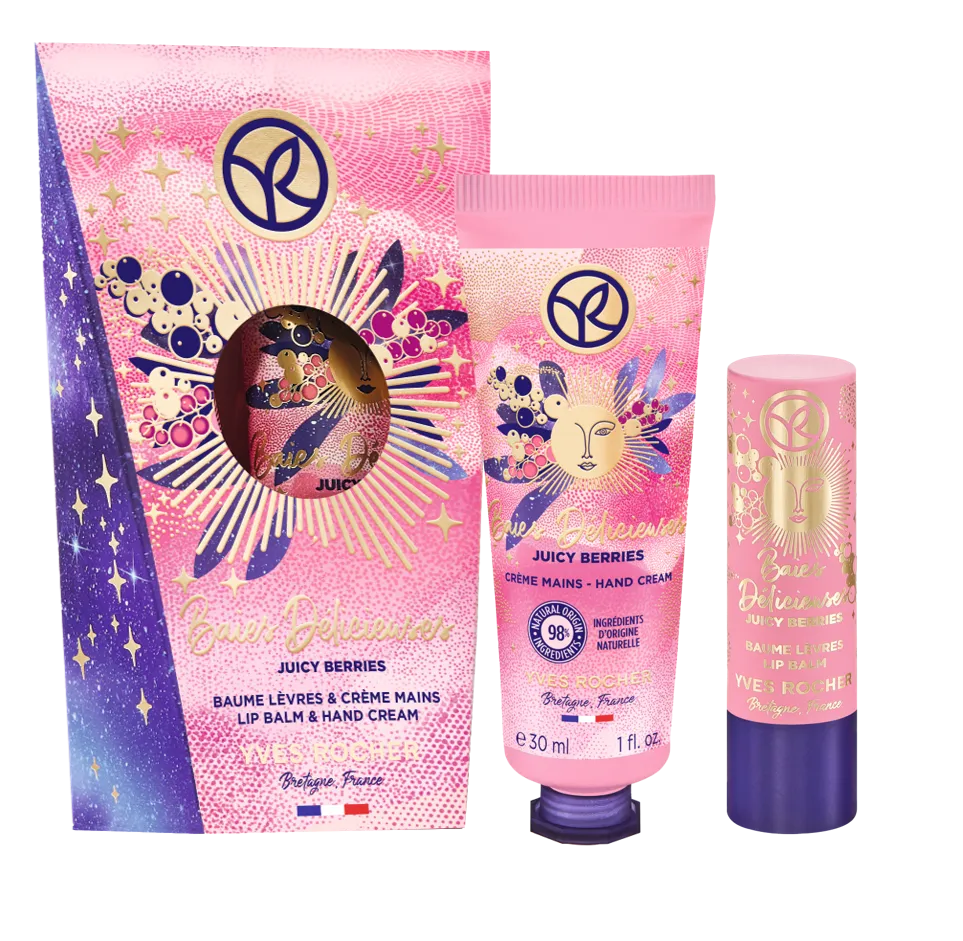 持っているだけで元気な気持ちになれるハンドクリームとリップクリームがセットに。あたたかい太陽を味方にして、ポップで甘いジューシーなベリーの香りでうるおいケア。乾燥が気になる時、唇や手肌をしっとり整えてくれる嬉しいキットです。天然由来成分98%※以上配合。