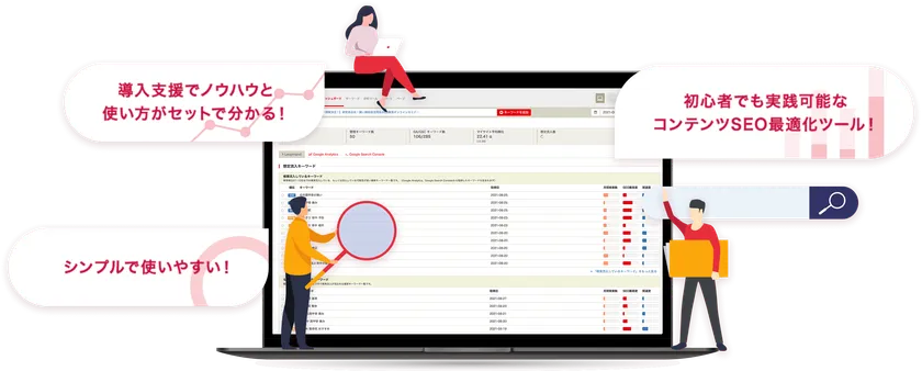SEO対策・コンテンツマーケティングに必要な機能にだけ特化したコンテンツSEO最適化ツールです。
