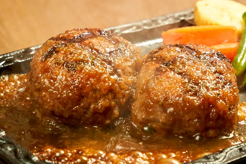 ごろんとした丸い形が特徴の牛100%極げんこつハンバーグは、注文後すぐ炭火で丁寧に焼き上げて提供します。厳選した牛肉を100%使用し、柔らかく滑らかな食感で肉汁があふれ出すジューシーな味わいに。
