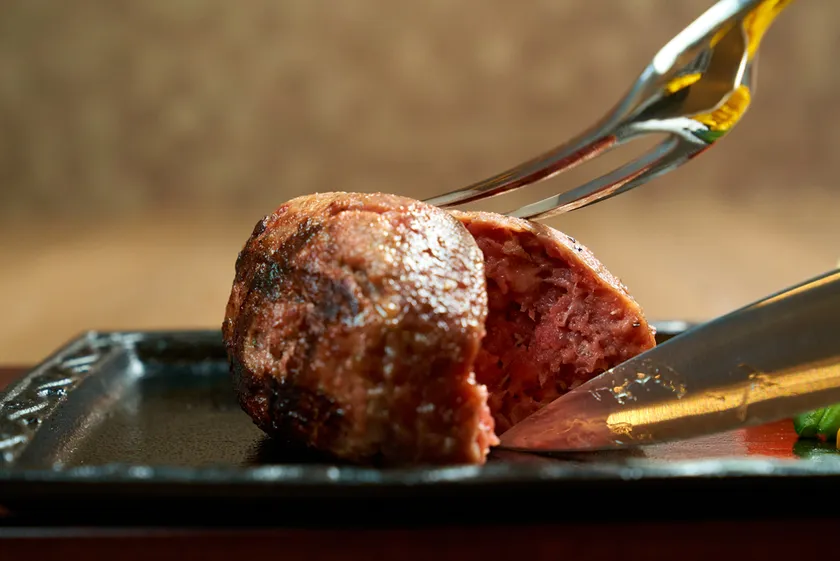 牛肉の“挽き方”にまでこだわり、新鮮なミンチを自社工場で製造。何度も試作を重ねて長い開発期間を経てようやく出来た自慢の逸品は、まさにステーキ店の“本気ハンバーグ”として完成しました。