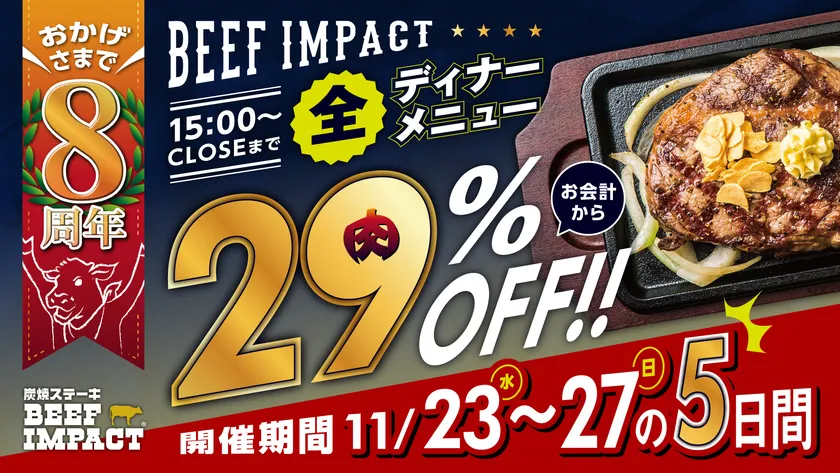 また、11月23日(水)~11月27日(日)の5日間では、ビーフインパクト8周年を記念したイベントを開催いたします。