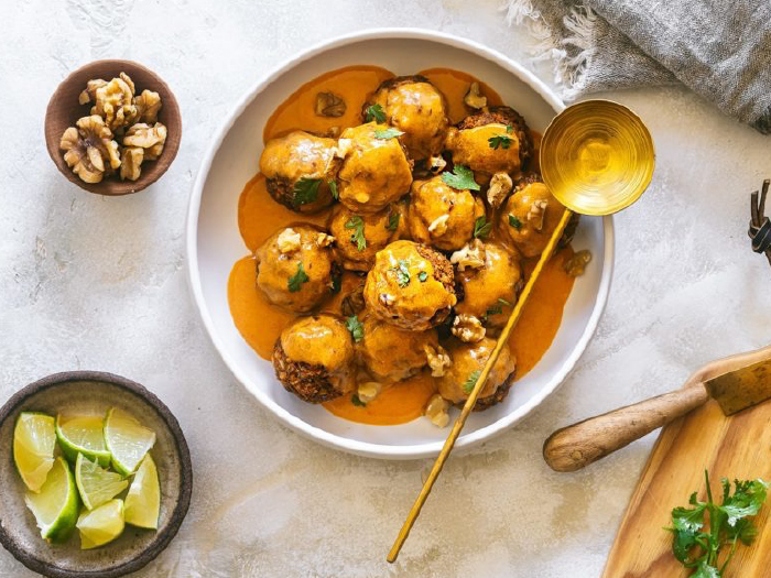 ココナッツカレーソースのくるみと レンズ豆のミートボール