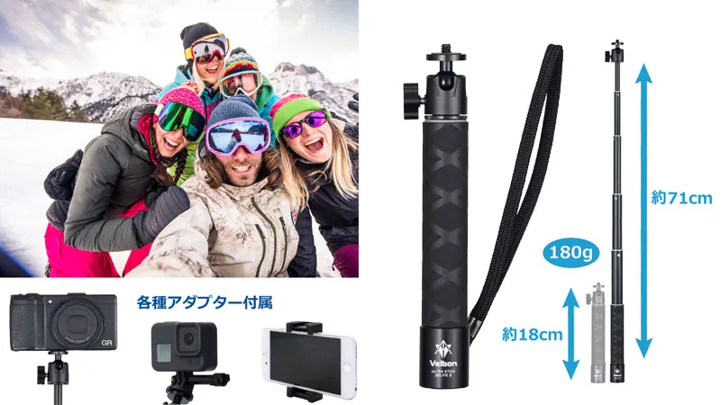 60年以上の歴史を誇る三脚ブランドVelbon(ベルボン)より、カメラ・スマホ・アクションカメラも使える高性能自撮り棒「ウルトラスティックセルフィーII」を新発売!