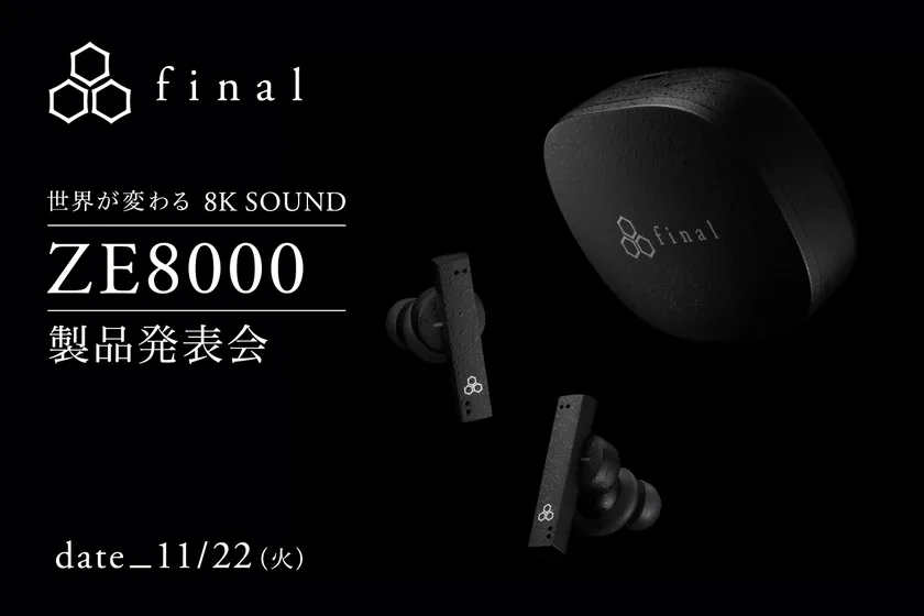 また、ZE8000の情報をお待ちいただいている一般ユーザーの皆さまに向けては、毎週火曜日に放映中の配信番組「final STORE LIVE !」の11月22日放送回にて、詳細をお届けいたします。発表会当日の夜20時より、こちらのURL( https://final-inc.com/pages/final-store-live )からご視聴いただけます。どうぞご期待ください。