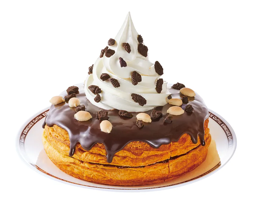 黒い雷神の異名を持つブラックサンダーがシロノワールと合体!コメダ自慢のデニッシュパンには、クッキーの食感が楽しめるチョコスプレッドを挟み、上からはリッチなチョコレートソースをたっぷりとかけました。プレーンビスケットとココアクッキーを散らし、ブラックサンダーのおいしさの秘訣でもあるザクザク感を再現しました。チョコレートの甘さとココアクッキーのほろ苦さは、さっぱりとしたソフトクリームとも相性抜群です。まさにおいしさイナズマ級!
