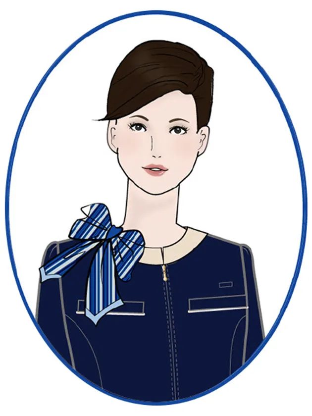 2020年秋、コロナ禍に沈む中、少しでもホテルを元気にしたいと新制服づくりは始まりました。全国のフロントスタッフから制服アイディアを募集したところ、デザイン面と機能面の両面から多数の意見が寄せられ、それらをベースにメーカーとの打ち合わせを進めました。ブランドカラーの“toyoko blue”は鮮やかで深く清いブルー。これと調和し、お客さまの出発を応援するフロントに相応しい、すがすがしいカラーを新制服に採用しました。