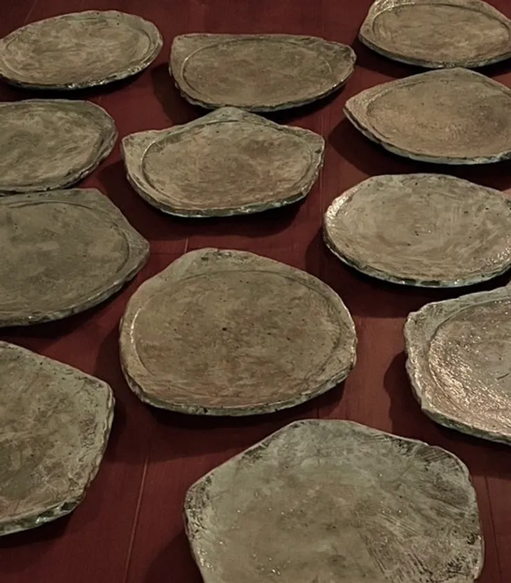 「10年ぶりに陶芸の個展をすることになった。10年間料理屋を主宰してきた経験の中で、器の生命について少し理解を深めた気がする。作家の手から生まれて、さまざまな出会い - 料理する人、食材、食べる人、洗ってくれる人、などなど - を経て器に命が吹き込まれる。今回はその器たちと心を通わせながら作陶に励んだつもり。