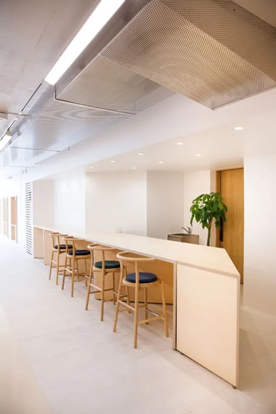 ユニテックスは本社大規模リノベーションと同時に、顧客接点イノベーションにチャレンジすべく、リアル・オンラインどちらでも世界中のお客様に自社製品のベネフィットを発信しての商談や製品デモ・技術サポートをいつでもできる空間を創り出しました。さらに、お客様と連携するスペースに加えて、デザイン性の優れた家具、高品質なソファーやカウンター席で、社員がいつでも、リラックスし、考え、コミュニケーションをとれるスペースも生まれました。機能的なデザインの中に、UNITEXのシンボル“X”やユニテックスが長年商材としている大容量データの長期保存に最適な磁気テープメディアをモチーフとした誘導サインなど、ユニテックスらしさを表現するこだわりのデザインも各所にちりばめられた新本社ビルです。