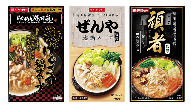 10月に夏日を観測したかと思えば急激に寒さを感じるなど気温の変化が激しい日々が続きますが、これからどんどん気温が下がり鍋のおいしい季節がやってきます。昨年の鍋つゆ売上ランキングでは10位以内に2つもランクインする(※)などラーメン店監修の鍋スープが今年もトレンドです。首都圏ライフでは関東で人気のラーメン店3社にご協力いただき、それぞれの人気ラーメンスープを再現した鍋スープを完成させました。