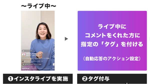 ライブ配信時にコメントしたユーザーを自動でタグ付け。