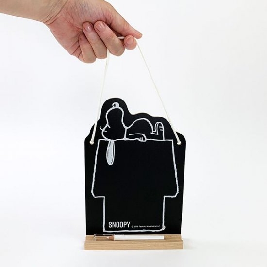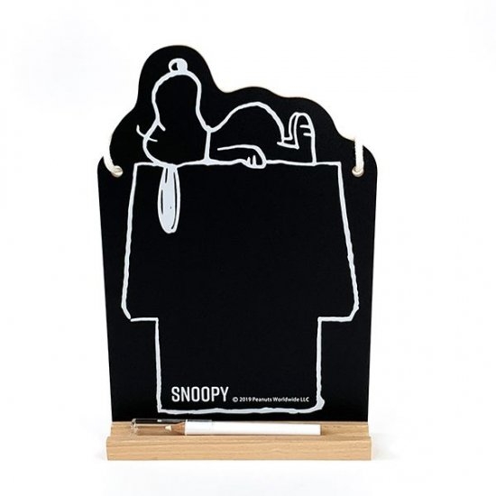 まず最初にご紹介するのは、スヌーピーハウスデザインの黒板ボードです。ヒモ付きで壁掛けができるようになっています。おうちの上に寝そべるスヌーピーが可愛いですよね~!