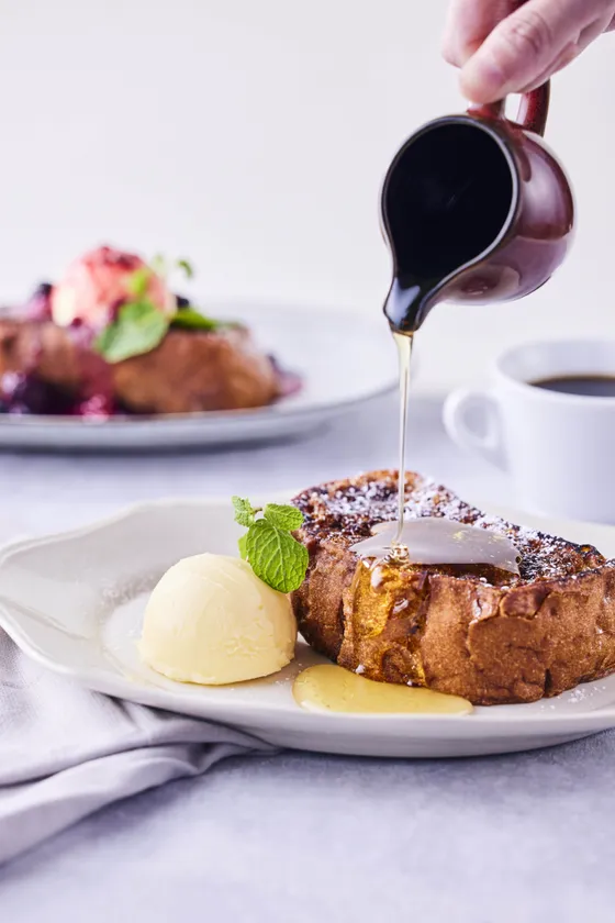 自家製アパレイユ(卵液)に浸し、じっくり焼き上げたフレンチトースト。極厚カットでお食事としてもご満足いただけるボリュームです。