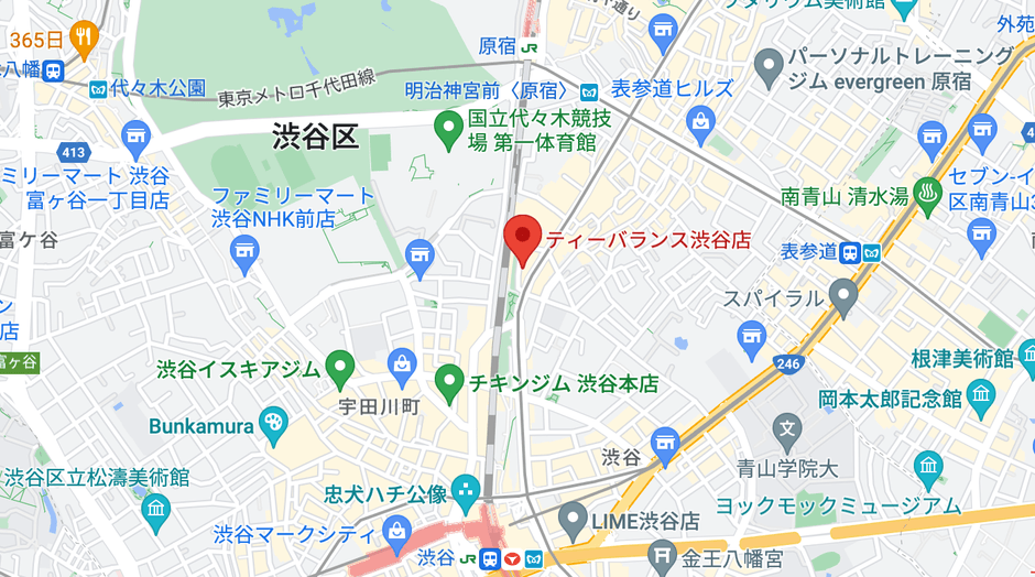 アクセス:JR渋谷駅東口徒歩8分、渋谷駅地下B1出口徒歩5分、明治神宮前駅7番出口徒歩6分