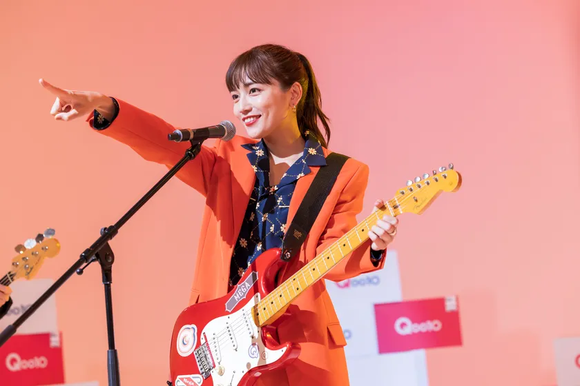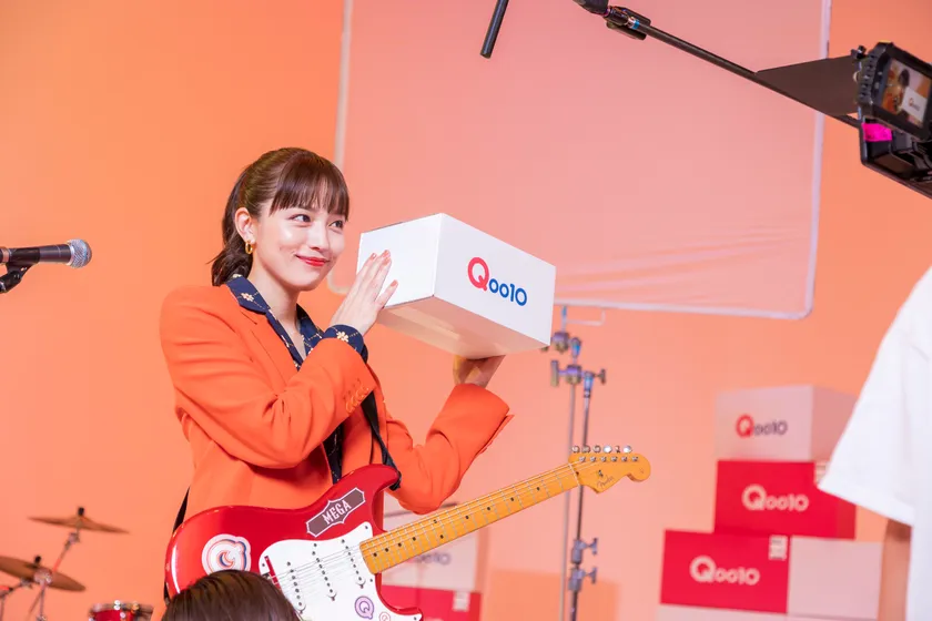本TV-CMには、Qoo10のイメージキャラクターである川口春奈さんが出演。“メガ割バンド”のメインボーカルとして、ライブに参加してくれているオーディエンスに向かって、MCパフォーマンスを行うシーンが描かれています。実際にギターを手に取ることも初めてだったという川口さんでしたが、「とても新鮮でした!」とインタビューで語っていたように、終始楽しそうにMCパフォーマンスシーンを演じられていました。