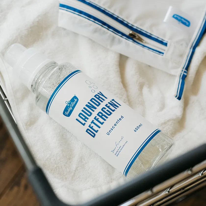 フレディ レックでは、オリジナルで開発した「子どもと海にやさしい洗濯洗剤」を販売しています。肌にやさしい低刺激性と、海にやさしい生分解性が特徴です。