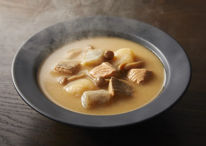 ・素材の香りや味わいを生かす「こんぶ出汁」を使用し、鮭の旨みやみその風味を引き出しました。